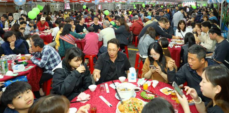 【記者林周龍/羅東報導】2026羅東三月初三帝爺生「呷拜拜・迎鬧熱」活動今(11)日傍晚在羅東鎮公所周邊盛大登場,帳棚下擺設400桌蘭陽風味料理、舞台上有歌星王彩樺等歌手表演,4月19日(農曆三月初三)則有奠安宮大神尪遶,祈求國泰民安,風調雨順,。