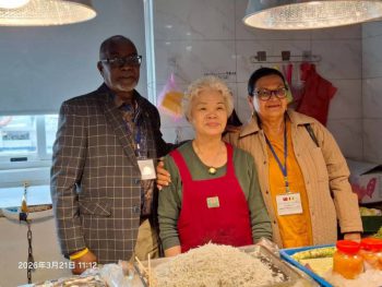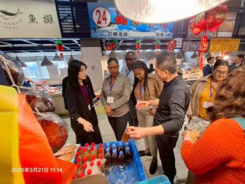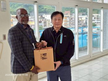 【記者林周龍/蘇澳報導】聖文森副總理李考克(St. Claire Leacock)來華訪問,21日上午11時到蘇澳區漁會進行漁業考察,由蘇澳區漁會理事長陳萬復本及市場行銷管理部負責接待,參訪結束後,雙方互贈紀念品,由理事長陳萬復代表本會,致贈李考克《百歲漁港南方澳》紀念套書及黑鮪魚罐頭禮盒,藉以向聖國副總理參訪團推展南方澳的漁村文化及本會精心製作的漁特產品。