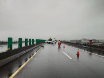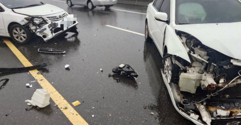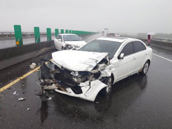 自小客車疑水漂失控撞擊護欄滑入內車道遭後車追撞2人傷