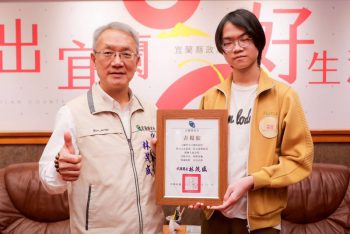 (宜蘭大新聞中心/宜蘭報導)羅東高中高二人文與社會科學資優班學生江翊丞,年僅16歲,憑藉短篇漫畫創作《傳聲筒》,在全國兩百多件作品中脫穎而出 ,榮獲文化部首屆青漫獎個人組金獎,優異表現獲得宜蘭縣代理縣長林茂盛親自接見祝賀,並致贈生日禮物,以表彰江翊丞的努力及優秀創作,讓大家再度看到宜蘭青年發光發熱。