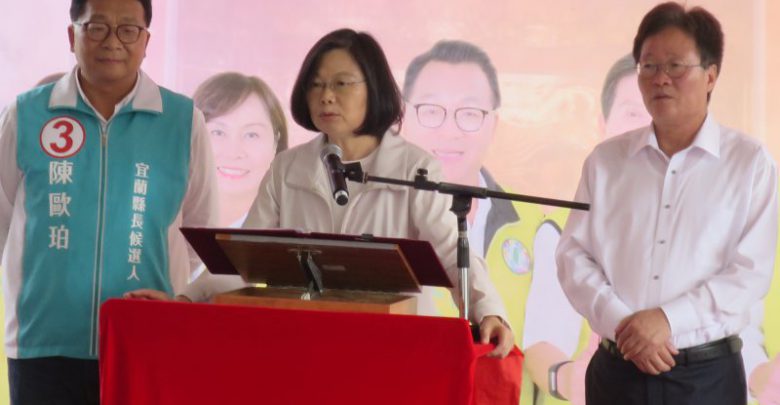 (記者張金源/宜蘭報導)總統暨民進黨主席蔡英文今(6)日由宜蘭縣長候選人陳歐珀、宜蘭縣代理縣長陳金德、宜蘭市長江聰淵、宜蘭縣議員候選人、宜蘭縣黨部主委黃建財及地方黨公職陪同,出席宜蘭縣農田水利工作人員後援會成立大會。