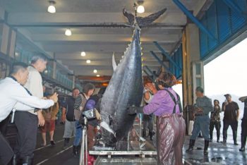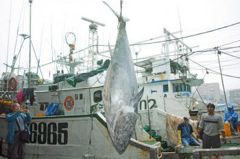 蘇澳籍全昌隆168號延繩釣漁船,本月4日從南方澳出港,7日上午在釣魚台北方海域作業時,發現2尾黑鮪魚上鉤,船長林宜俊立刻指示印尼籍漁工電擊拉上船,其中一尾目測有250斤重,隨後林宜俊通報蘇澳漁業電台,漁船暫停作業加速返港。