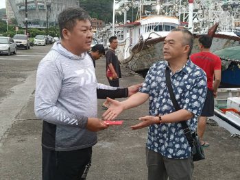 蘇澳區漁會理事長陳萬復及總幹事陳春生,昨日偕同德成136漁船張姓船長前往基隆,除致贈蘇澳區漁會製作的罐頭給參與協尋的海巡官兵,以感謝海巡弟兄的伸援外,德成136號張姓船長也包了一份紅包,感謝友船「華國127號」海釣船的救命之恩,在大海中將他從鬼門關前救回一命。