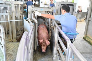 (記者林周龍/五結報導)農業部公告豬隻禁運禁宰措施解除,代理縣長林茂盛今(7)日前往宜蘭肉品市場關心解封首日毛豬交易狀況。為避免拍賣價格波動過大,肉品市場毛豬拍賣價格以公告禁運禁宰前一日即10月21日宜蘭鄰近三縣市(新北市、桃園市及花蓮縣)平均拍賣價為基準起拍。