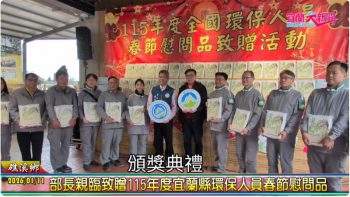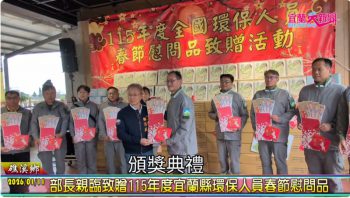 (記者蕭夢麟/礁溪報導)農曆新春將至,環境部與宜蘭縣政府今(11)日在礁溪鄉巨大垃圾再利用修繕廠共同舉辦環保清潔人員春節慰問品致贈活動,向宜蘭縣各鄉(鎮、市)公所清潔隊員長年來守護環境整潔、辛勤付出的努力表達誠摯感謝。環境部與縣府期盼透過本活動激勵基層士氣,讓清潔隊員感受到環境部與縣府的支持與關懷,共同迎接嶄新的一年。