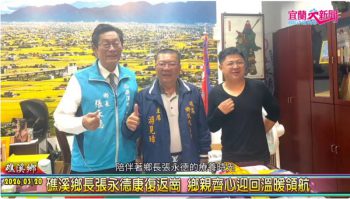 (記者蕭夢麟/礁溪報導)在這段日子裡,礁溪鄉的鄉親朋友們與各界先進,始終以滿滿的祝福與關懷,陪伴著鄉長張永德的療養時光。如今,鄉長在充分休息與悉心調養後,已恢復健康,今日重返工作崗位,重新展開為民服務的日常。