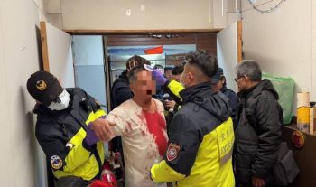 謝姓男子受傷後血流滿襟,店家急忙打電話報警,救護人員到場後檢查傷口,發現謝姓男子頭部有一道長長撕裂傷,鮮血直流,全身血跡斑斑,胸口一大片紅色印記,畫面怵目驚心,謝男隨後在救護人員陪同下送醫治療,嫌犯看到警車後隨即一哄而散,警方調閱路口監視器後,目前已掌握犯嫌身分,將積極追緝到案。