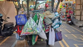 這輛車上滿載資源回收機車,損壞公物仍未停車察看,一路搖搖晃晃繼續有羅東夜市前進,民眾見狀嚇得一身冷汗,紛紛閃避以免遭受碰撞,「移動城堡」直到民生路機車上超高的角鋼,被夜市商店廣告看板卡住,動彈不得之下,阿伯才勉強下車整理,有不少人對阿伯的辛苦表示理解與佩服,但更多人憂心這樣的載運方式恐怕埋下交通危險,一旦緊急狀況就麻煩了。