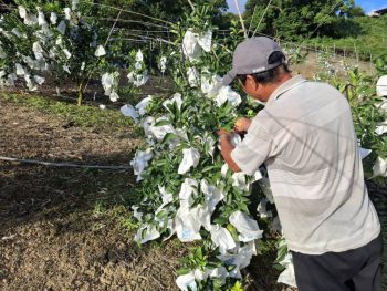 (宜蘭大新聞中心/頭城報導)今年至目前,宜蘭地區未受颱風侵襲,風調雨順,頭城鎮農會在110年輔導農友種植新品種「黃金茂谷」,鎮農會表示,中秋節前後是農民忙於套袋作業,約需1個多月才能全部完成,目前總體狀況約完成套袋1半。