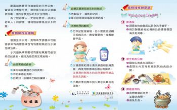 衛生局長徐迺維特別提醒,風災大雨過後,易使土壤及泥水中的病源菌暴露於地面,除了接觸傳播外,也可能經由食用受汙染的水或吸入性感染。民眾災後整理居家環境,消毒可以使用市售含氯漂白水(約含次氯酸鈉5%)稀釋100倍擦拭。清理家園時,務必穿著雨鞋或防水長靴、配戴防水手套及口罩,做好個人防護措施,工作完畢或裝備卸除後,應以肥皂及清水洗手。老年人、身體衰弱、免疫功能不佳、慢性病患者(糖尿病、心臟病、高血壓、癌症及酒癮者等)及皮膚有外傷者,應避免皮膚暴露於污水或淤泥,如有出現發燒、頭痛、肌肉痛、腹痛、腹瀉、黃疸、倦怠或其他身體不適的症狀,請儘快就醫。