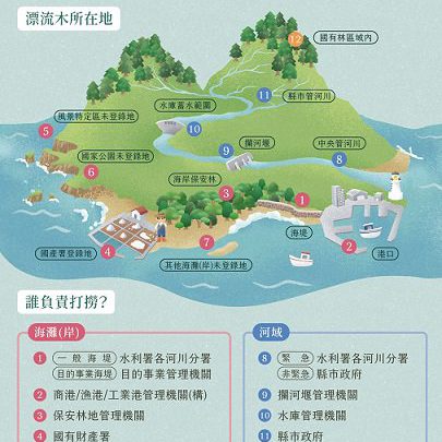林業保育宜蘭分署表示,漂流木的災後處理,係依照「屬地原則」亦即由各土地管理機關負責清理。往年宜蘭地區漂流木易堆積熱點,如沿海沙灘主要由宜蘭縣政府清理,風景遊憩區係由東北角暨宜蘭海岸國家風景區管理處清理,保安林及蘭陽溪出海口兩岸由宜蘭分署清理,至於縣內各漁港如由有漂流木發生,則由宜蘭縣政府海洋及漁業發展所負責清理。