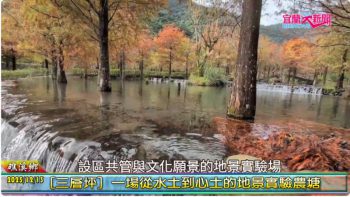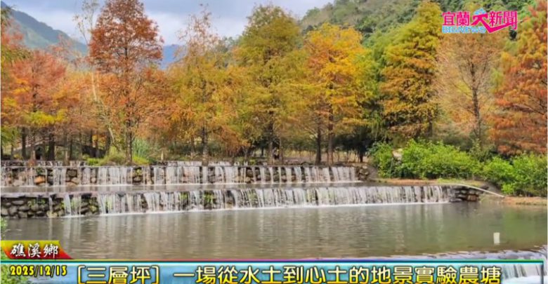 (記者蕭夢麟/大礁溪報導)在宜蘭礁溪與員山交界的山谷裡,冬日限定的落羽松倒映在層層水塘,九層疊瀑緩緩傾瀉,彷彿時間也在此放慢了腳步。這片如詩風景,名為三層坪農塘,是一處結合水土保持、社區共管與文化願景的地景實驗場。