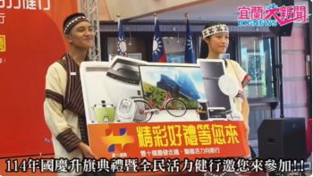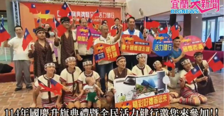 114年國慶升旗典禮將於10月10日上午6時30分,在宜蘭運動公園田徑場舉行,除升旗典禮外,將安排勒巴彥文化藝術團表演活力舞蹈,讓活動更加生動活潑。升旗儀式後將進行健行活動,從宜蘭運動公園體育館前廣場出發,經縣政府折返。縣府當天將準備2,500面小國旗發送民眾。另外準備3,500份活力早餐贈送全程參與健行活動的民眾(數量有限,送完為止),同時還有機會參加摸彩,獎項有電視、電冰箱、洗衣機、除濕機、電鍋及腳踏車等豐富獎品。