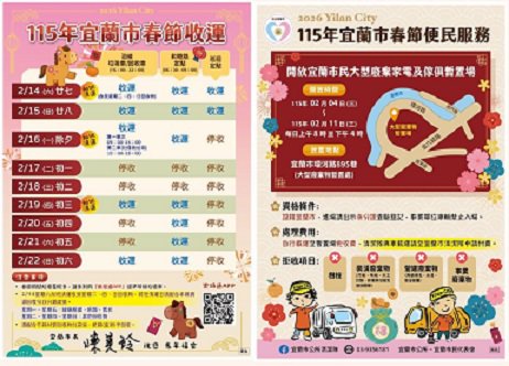 2026年宜蘭市春節期間垃圾清運時間如下: