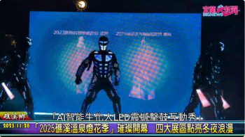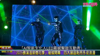 今晚的啟動點燈儀式特別邀請「AI智能生化人LED震撼擊鼓互動秀」登場,結合現代科技與傳統打擊樂,透過璀璨LED燈光、震撼音樂與力道十足的擊鼓表演,帶來視覺與聽覺的雙重震撼,由張永德鄉長宣布「礁溪溫泉燈花季」正式展開。
