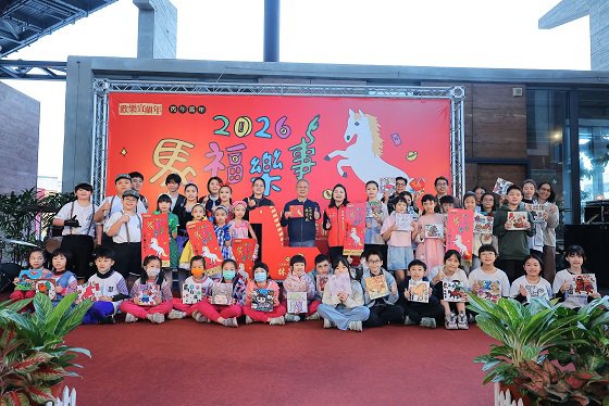 接續由代理縣長林茂盛揭曉馬年紀念紅包及春聯設計成果;林代理縣長表示,邁入第33年的歡樂宜蘭年,是宜蘭縣凝聚常民生活的與節慶精神的重要活動,今年主視覺以「馬福樂事」為主題,是由成功國小美術班學生共同創作,透過孩子的創意與藝術能量,以繽紛色彩與活力奔騰的白馬,代表勇氣、前進與突破;紀念紅包的立體馬結合存錢筒功能,讓民眾DIY摺出象徵財源滾滾來的存錢筒,透過紅包傳遞「福氣在路上、馬上有錢、好事接連來」的祝福,期盼大家在新的一年勇往直前,收進的不只是紅包,更是滿滿的美好與樂事,一起迎向精彩不凡的Marvelous馬年!